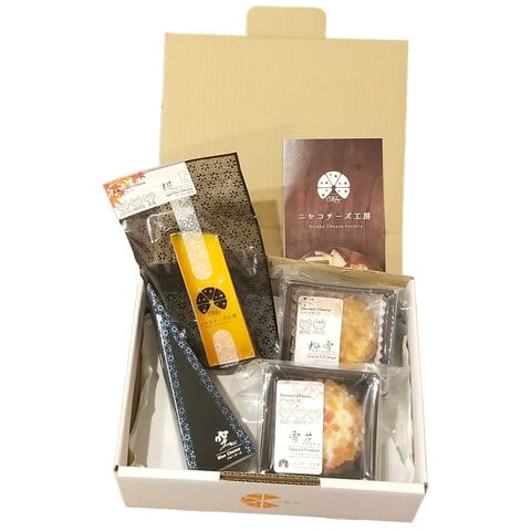 【数量・内容】ブルーチーズ二世古 空100g、デザートチーズ二世古 雪花(パパイヤ&パイナップル)150g、セミハードチーズ二世古 椛(12ヶ月)100g、デザートチーズ二世古 粉雪(クローブ×オレンジ)150g