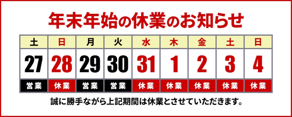 - 12月29日までのご注文で年内発送、以降のご注文は1月5日以降順次発送いたします。