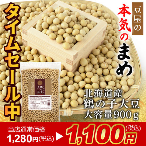【当店通常価格1,280円が!タイムセール1,100円】大豆 北海道産 鶴の子大豆 900g 送料無料 大粒 2.8分上 高級大豆 業務用