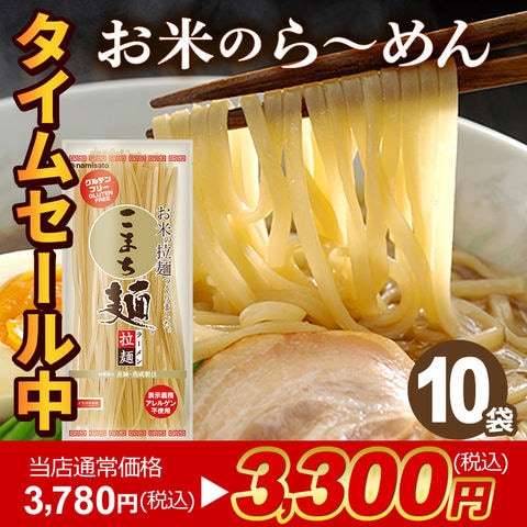 【当店通常価格3,780円が!タイムセール3,300円】お米のラーメン こまち麺 拉麺 250g×10袋 送料無料 グルテンフリー 早ゆで 無塩 乾麺 国産