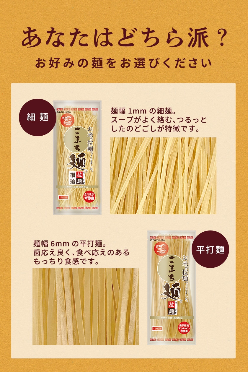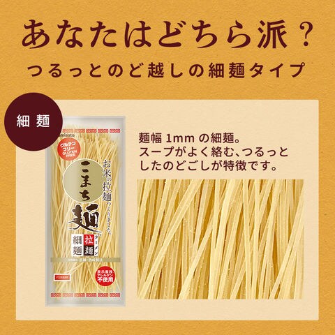 小麦粉不使用グルテンフリーのラーメンで、小さなお子様からご年配の方まで安心してお召し上がり頂けます。ラーメン、つけ麺、焼きそば、担々麺、あんかけ、冷やし中華にもおススメです。