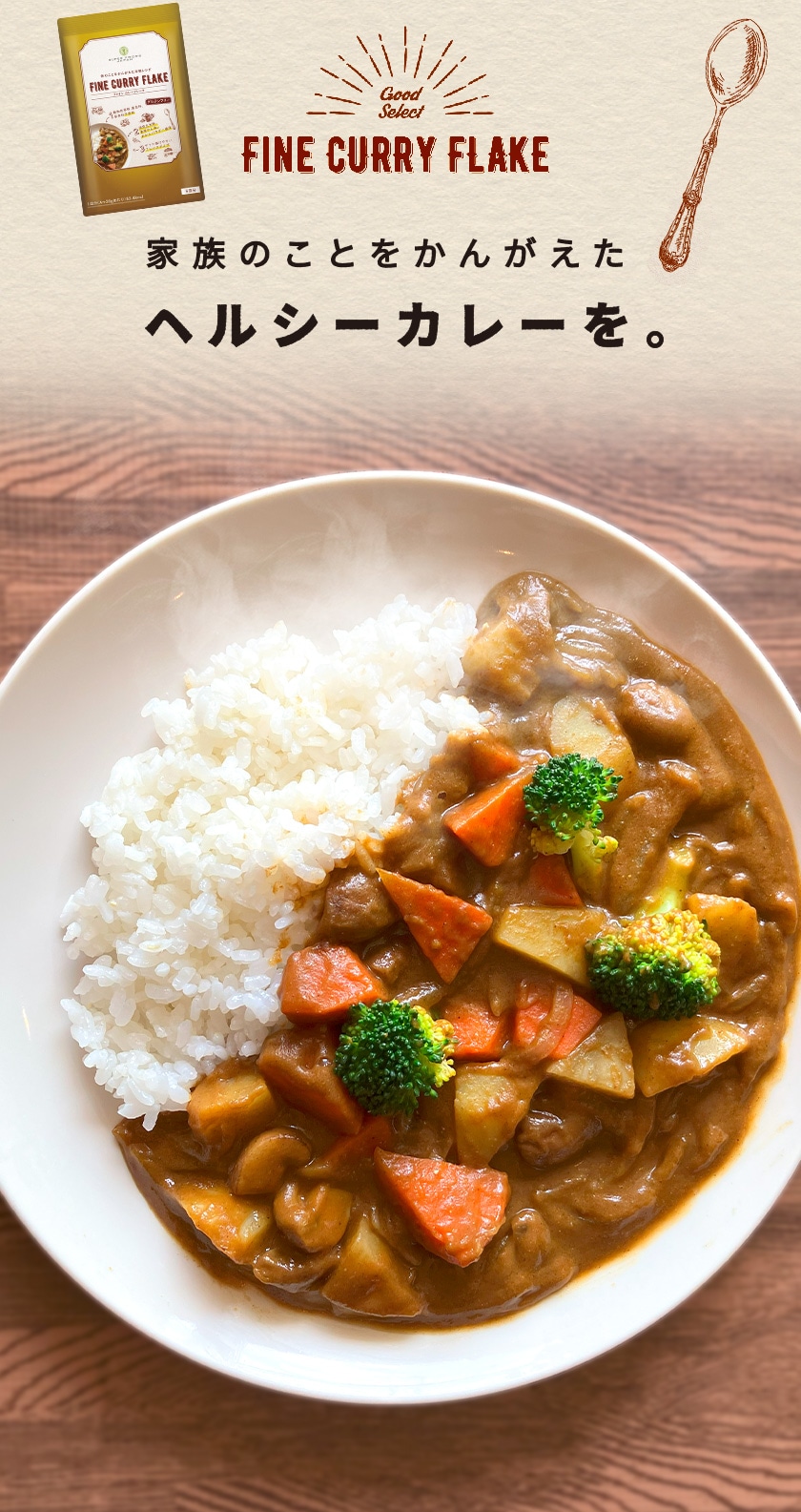 「ヘルシー!」と「おいしい!」の両方にこだわった動物性原料を使用していない植物性のカレーフレーク。着色料、保存料、乳化剤、香料なども無添加です。また、砂糖も使わずに果物や昆布で自然の甘みとコクを出しています。18種類以上のスパイスをブレンドし、香り高いガラムマサラを加えることで本格的な味わいに仕上げました。フレーク状なのでサッと溶けやすく、様々なお料理の味付けにも手軽にお使いいただけます。