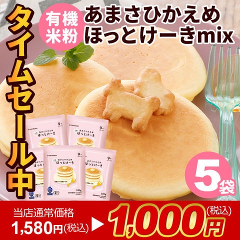 【当店通常価格1,580円が!タイムセール1,000円】有機ほっとけーきmixあまさひかえめ 500g (100g×5袋) 送料無料 グルテンフリー アルミフリー 小麦不使用