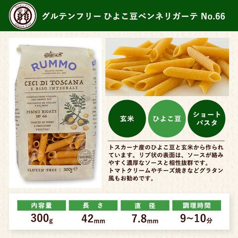 RUMMO グルテンフリー パスタ ひよこ豆 ペンネリガーテ No.66 300g おためし 小麦粉不使用 アレルギー 玄米 とうもろこし