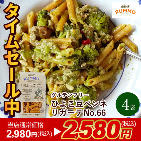 RUMMO グルテンフリー パスタ ひよこ豆 ペンネリガーテ No.66 300g×4袋 送料無料 日付指定 小麦粉不使用 アレルギー 玄米 とうもろこし