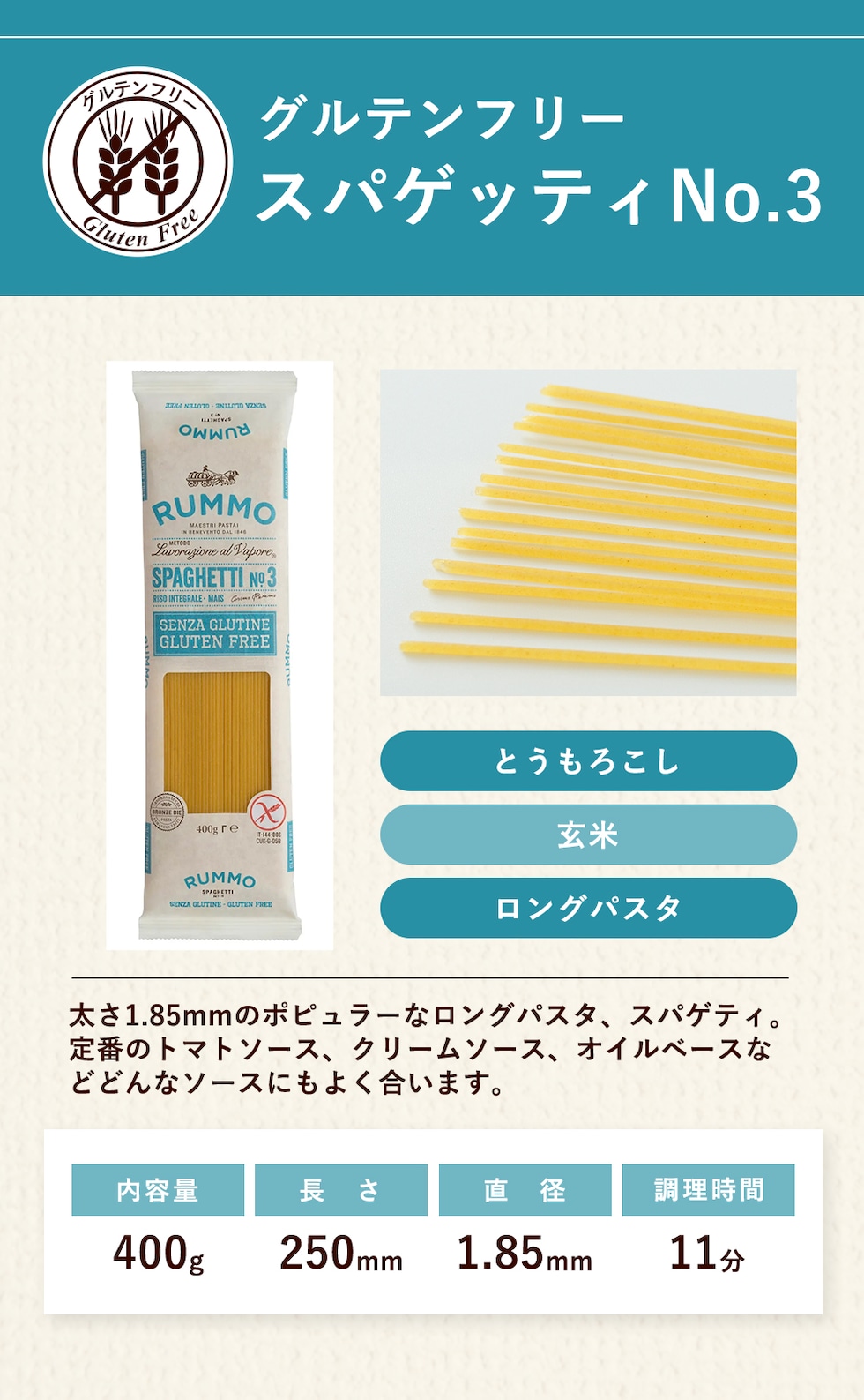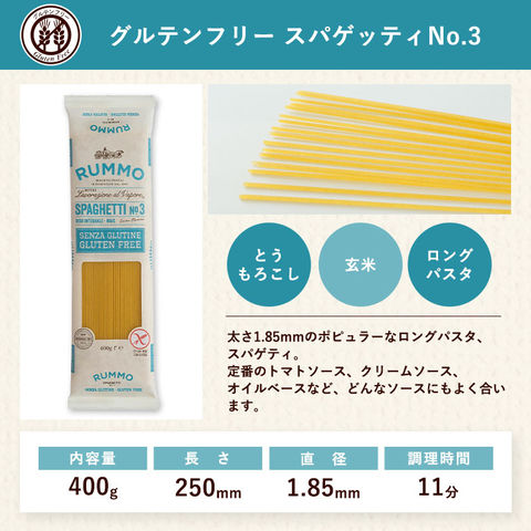 RUMMO パスタ グルテンフリー スパゲッティ No.3 400g×24袋 送料無料 日付指定
