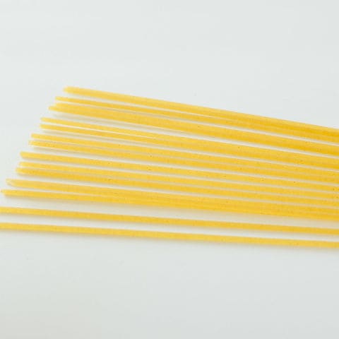太さ1.85mmのポピュラーなロングパスタ、スパゲティ。定番のトマトソース、クリームソース、オイルベースなど、どんなソースにもよく合います。内容量400g、長さ250mm、直径1.85mm、調理時間11分