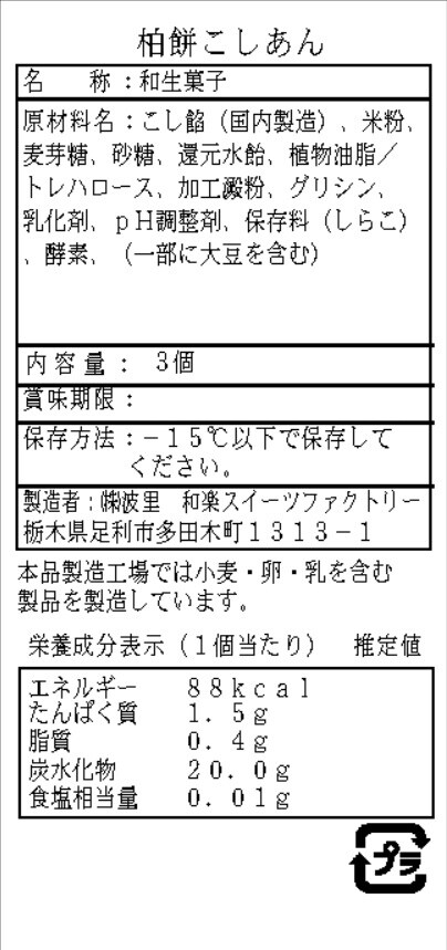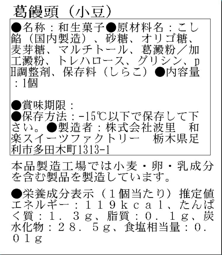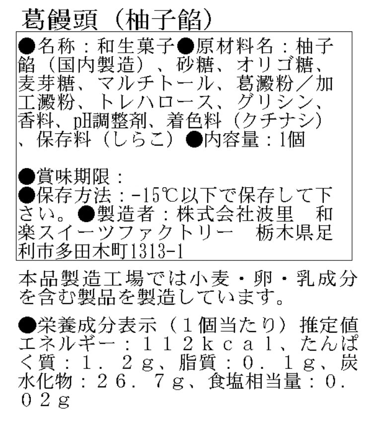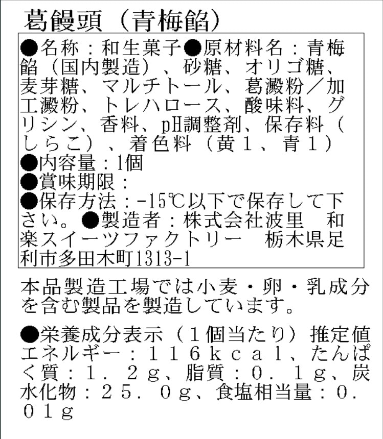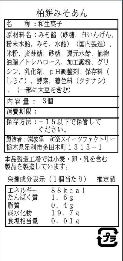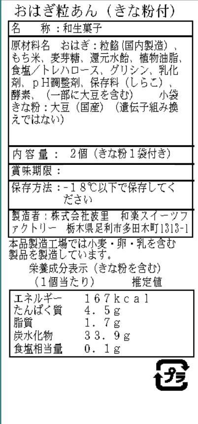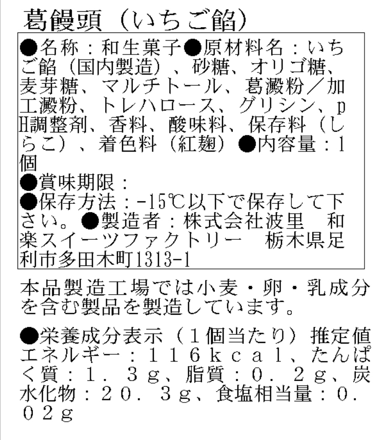 | 製造・加工者 | 株式会社波里 和楽スイーツファクトリー TEL.0284-91-4511 |