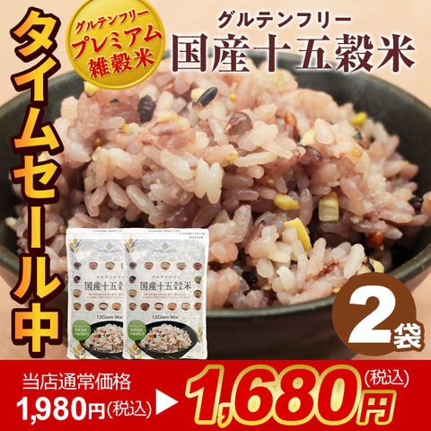 【当店通常価格1,980円が!タイムセール1,680円】十五穀米 900g(450g×2袋) 送料無料 グルテンフリー 雑穀米 国産 無添加