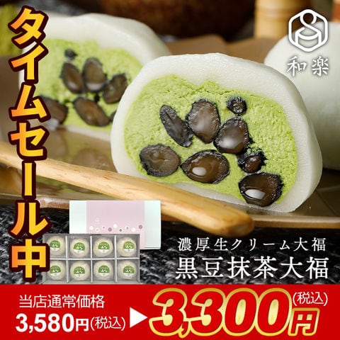 【当店通常価格3,580円が!タイムセール3,300円】生クリーム大福 黒豆抹茶 8個入 送料無料 ギフト プレゼント 抹茶大福 アイス 和菓子