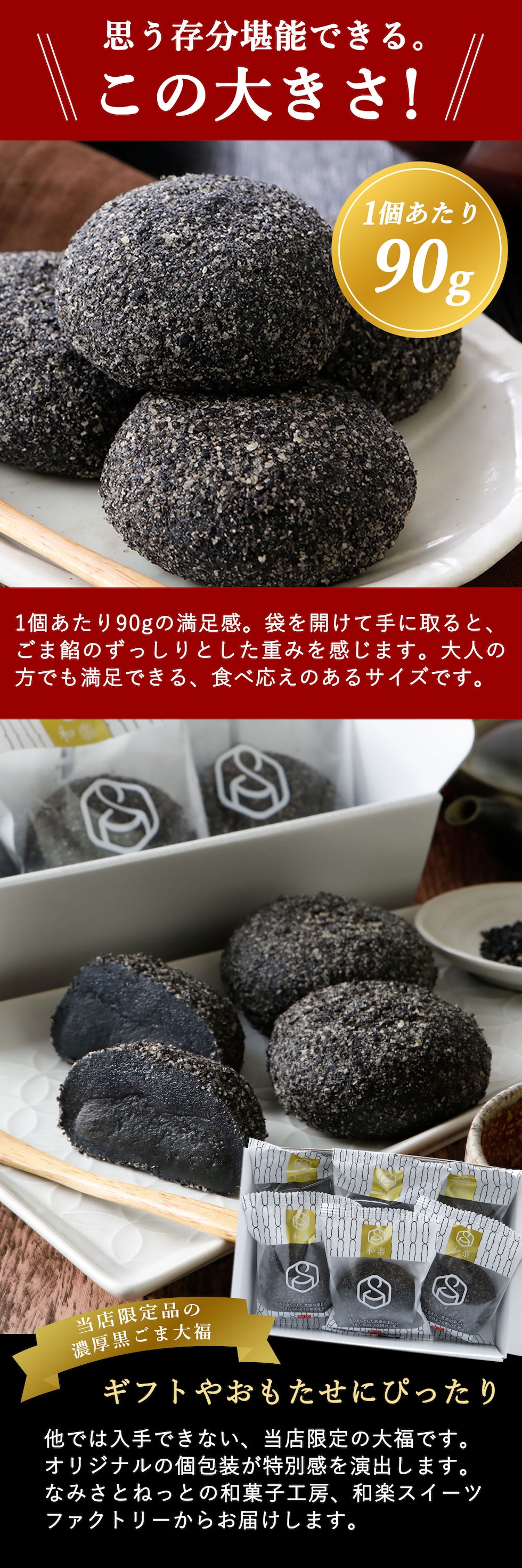 お歳暮 熨斗 冬ギフト 濃厚 黒ごま大福 6個入 送料無料 ギフト スイーツ お菓子 プレゼント 胡麻餡 和楽 胡麻大福
