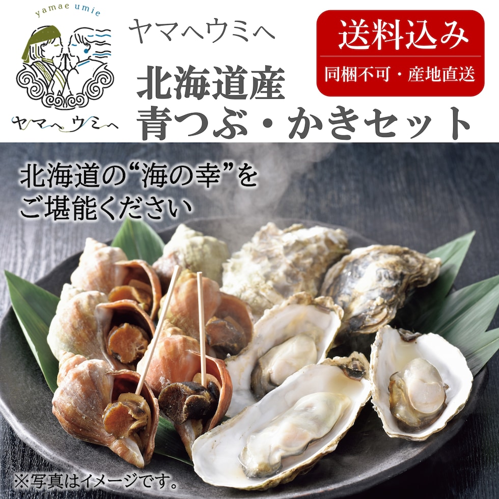 【ヤマヘウミヘ】【産地直送】【送料込み】北海道産青つぶ・かきセット