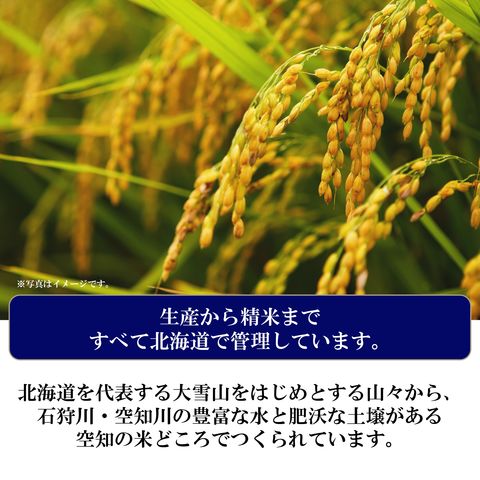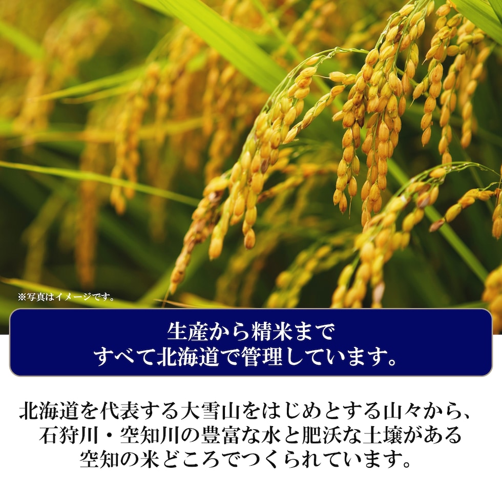 北海道を代表する大雪山をはじめとする山々から、石狩川・空知川の豊富な水と肥沃な土壌がある空知の米どころで作られています。粘り、甘み、硬さのバランスが良く、あっさりとした口当たりで冷めても美味しく、お弁当やお寿司にも適しています。