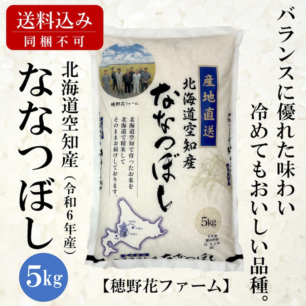【送料込み・同梱不可】令和6年産 北海道空知産ななつぼし(5kg)<穂野花ファーム> ※精米の都合により、毎月10日以降の発送となります※ ※1回の購入2袋まで※