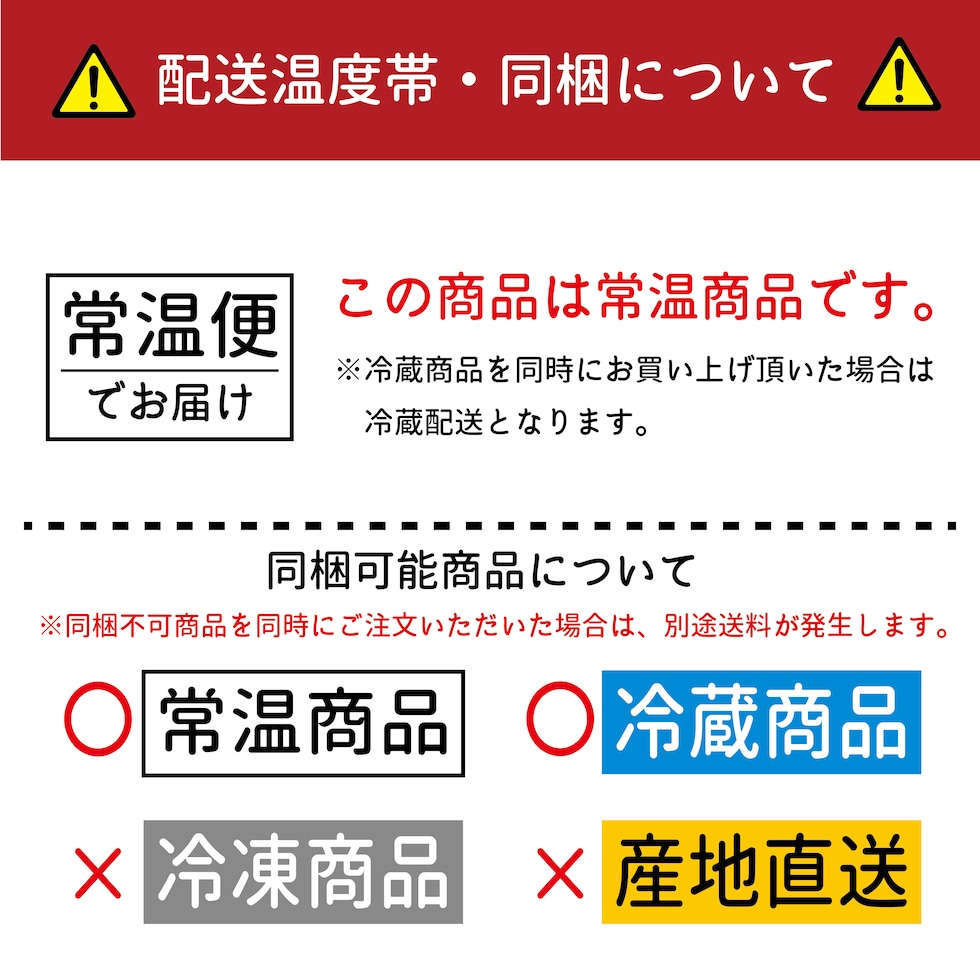 ②冷蔵商品と常温商品を同時購入された場合は、冷蔵便での同梱出荷となります。
