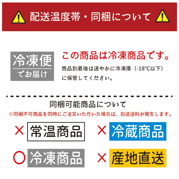 ②冷凍商品と他の温度帯商品を同時購入された場合は、同梱出来かねますので、別途送料を頂戴致します。