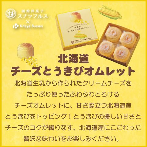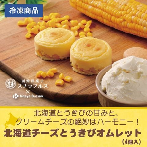 <函館洋菓子「スナッフルス」と「キタヤ物産」のコラボスイーツ> 北海道チーズとうきびオムレット(4個入) ◆要冷凍◆