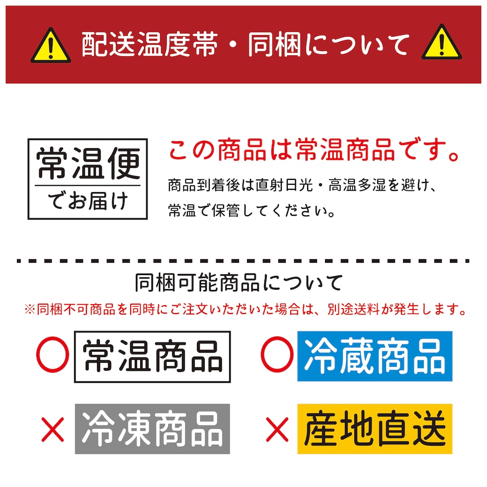 ①常温商品をご購入された場合でも、商品特性、及び季節等により冷蔵便での出荷となる場合があります。