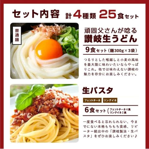 【讃岐生うどん9食麺のみ】 麺(300g)3人前×3袋 【生パスタ2種6食麺のみ】 麺(180g)2人前×3袋 【生そば6食麺のみ】 麺(180g)2人前×3袋 【札幌 味噌ラーメン4食 】 中太麺90g×4袋、スープ4袋 |