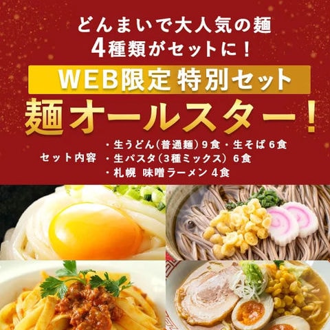 WEB限定! 麺オールスターセット 送料無料 生うどん ( 普通麺 ) 9食 生そば 6食 生パスタ (3種ミックス) 6食 生ラーメン 4食 うどん パスタ そば ラーメン 送料無料(北海道・沖縄・離島+1500円)