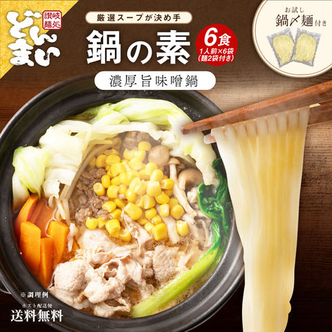 9種から選べる 鍋の素 6袋【濃厚旨味噌鍋】 おまけで鍋〆の麺2袋付き ポイント消化 ポイント消費 食品 お試し ギフト お取り寄せ グルメ 特産品 通販 おつまみ 鍋締めの麺 鍋締めの中華麺 冬 おいしい 美味しい 鍋 簡単 かんたんレシピ