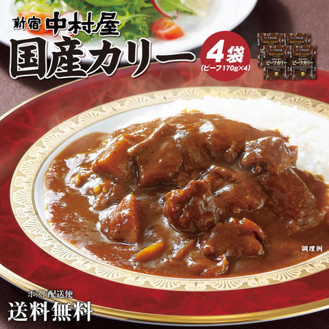 選べる 新宿中村屋 国産カレー ビーフカリー 170g×4袋 レトルトカレー カレー ポイント消化 食品 お試し ポイント消費 グルメ 非常食 保存食 防災食 長期保存 仕送り 非常用 防災 備蓄 在庫処分 フード 洋食 簡単 便利 時短 時間短縮 セット有名店 銘店