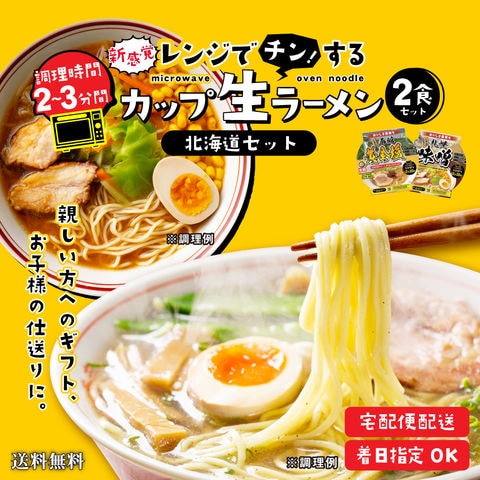 【2個購入で+1】お手軽生ラーメンカップ付【北海道2種食べ比べセット】札幌味噌 函館黄金塩 レンジ レンチン 生麺 時短 本格 ギフト 贈答 お得 食品 グルメ 食べ物 ポイント消化