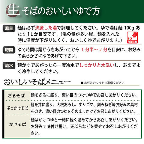 【麺】:小麦粉(国内製造)、そば粉、食塩/酒精、pH調整剤、加工でん粉、(一部に小麦・そばを含む) 【つゆ】:しょうゆ(本醸造)、砂糖、食塩、たん白加水分解物、かつおぶしエキス/調味料(アミノ酸等)、アルコール、カラメル色素、(一部に小麦・大豆を含む) |