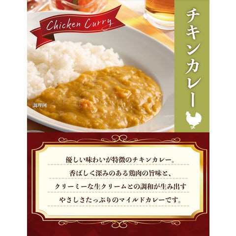 厳選したスパイスと、玉葱、リンゴ、チャツネ等をじっくり煮込んだ、本格的なレトルトカレー。 フルーツから出るさわやかな酸味と、まろやかでコクのある辛味が特徴です。 お好みに合わせて、ビーフカレー、ポークカレー、チキンカレーの選べる3種類の味をご用意しています。 ※この商品はレトルトパウチ食品です。 |