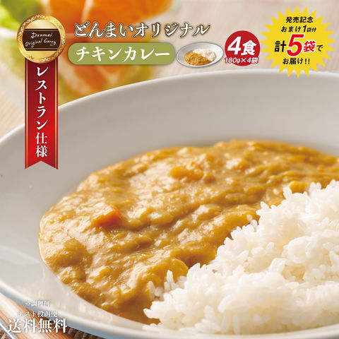 どんまいオリジナルカレー4食(180g×4) 【チキンカレー4袋】+【発売記念】おまけ1袋付 レトルトカレー 鶏肉 レストラン仕様 本格 ポイント消化 ポイント消費 グルメ 非常食 保存食 防災食 長期保存 仕送 非常用 便利 どんまい