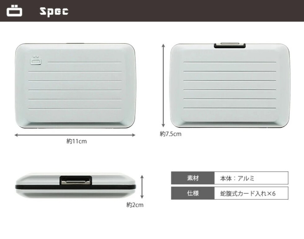 【OGON】フランス製アルミ防水カードホルダー シルバー