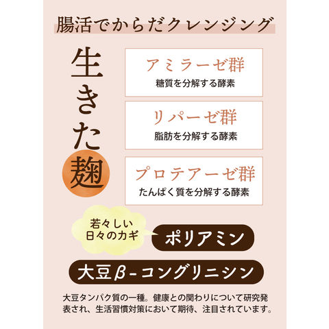 | 原材料名 | 国産粉末味噌、米麹、食塩、砂糖、オルニチン、ホタテエキス、しじみエキス(国産)、90種の植物発酵エキス、乾燥ネギ/調味料(アミノ酸等)、(一部に小麦・大豆・豚肉・りんご・やまいもを含む) |