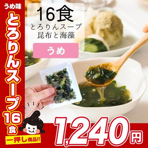 [16食分]とろりんスープ昆布と海藻 うめ味 即席スープの素 個食パウチ ポイント消化 お歳暮ギフト