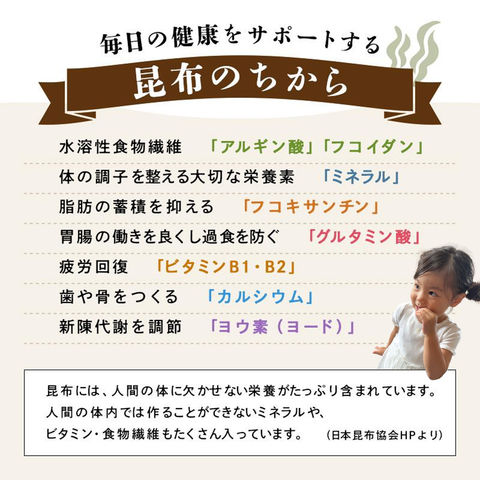 原材料:昆布(北海道産)、食塩、砂糖、還元水飴、乳糖/調味料(アミノ酸等)、(一部に乳成分を含む)