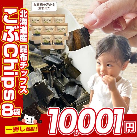 [セット]こぶChips 65g×8袋 昆布チップス 北海道産 昆布100% おやつ昆布 おつまみ昆布 昆布スナック パリポリ昆布 味付き