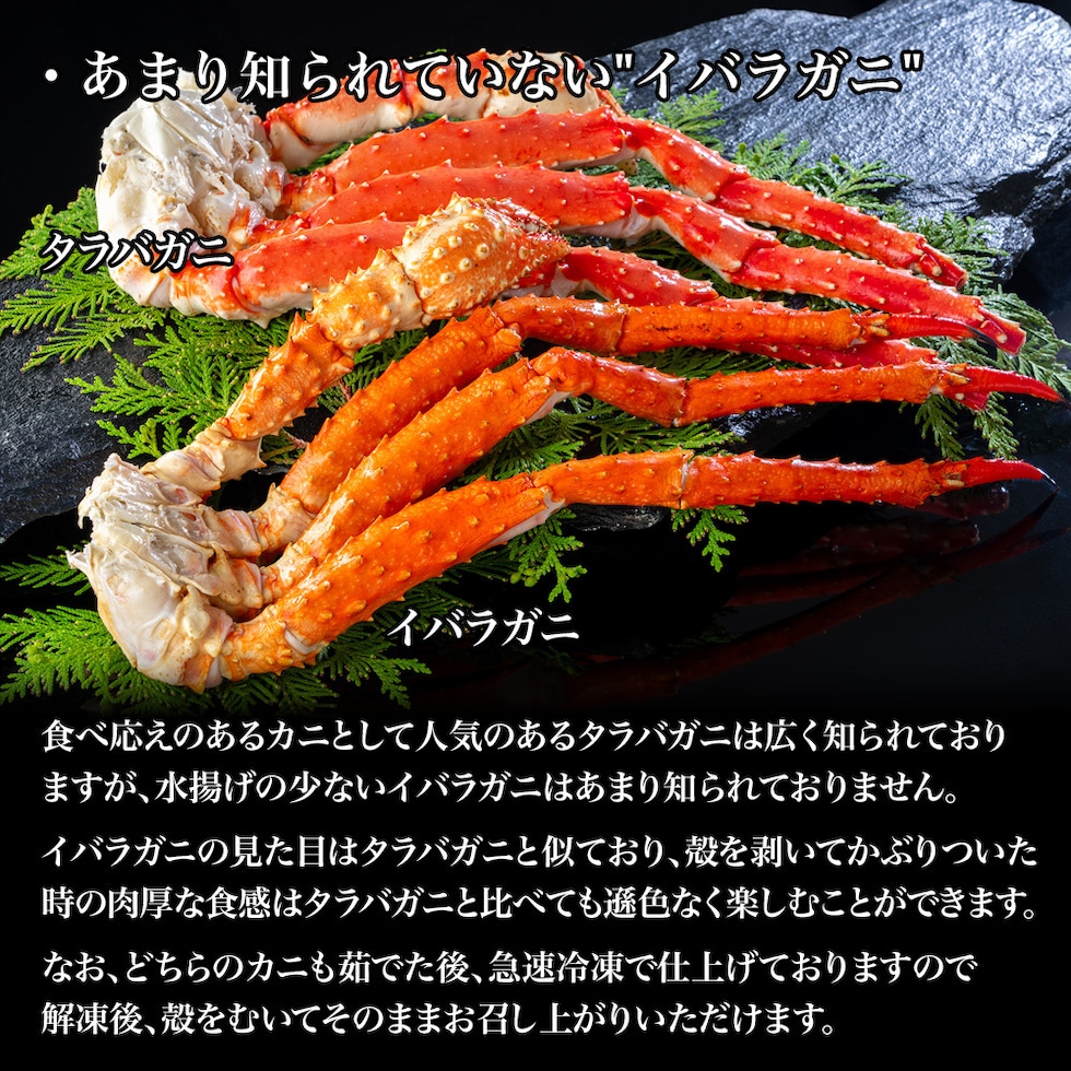 | 内容量 | タラバガニ:1肩入 1.1kg / 総重量1.3kg 前後※差分は氷膜重量分です |