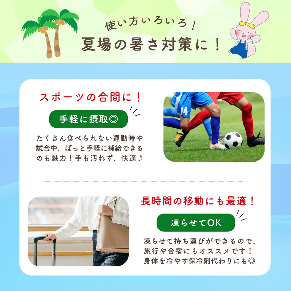 | 水分補給にぴったりのシャインマスカット味のゼリー飲料がビタミンC入りの栄養機能食品となってリニューアルしました!汗をかいた時、寝込んだ時の水分補給が片手で簡単にできます。暑い夏の熱中症対策にもおすすめです。 |