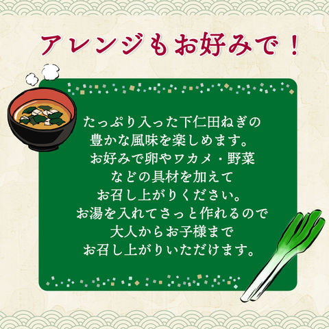 | JA甘楽富岡産の下仁田ねぎがたっぷり入った和風しょうゆ味の粉末スープの素です。お湯を入れるだけで簡単にスープが楽しめます。お好みで卵やワカメなどの具材を加えてお召し上がり下さい。 |