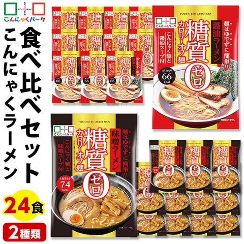 こんにゃく麺 ダイエット食品 食べ比べセット 糖質0カロリーオフ麺 醤油ラーメン 味噌ラーメン 置き換え こんにゃくラーメン こんにゃくパーク スープ付き 糖質ゼロ麺 糖質0麺 低カロリー 蒟蒻 群馬県産 ファスティング ヨコオデイリーフーズ 1袋170g 24袋入 (各味12袋入)