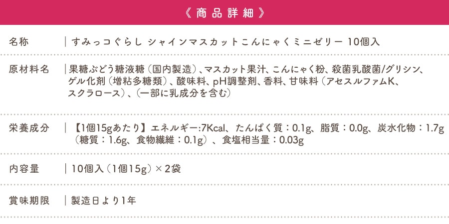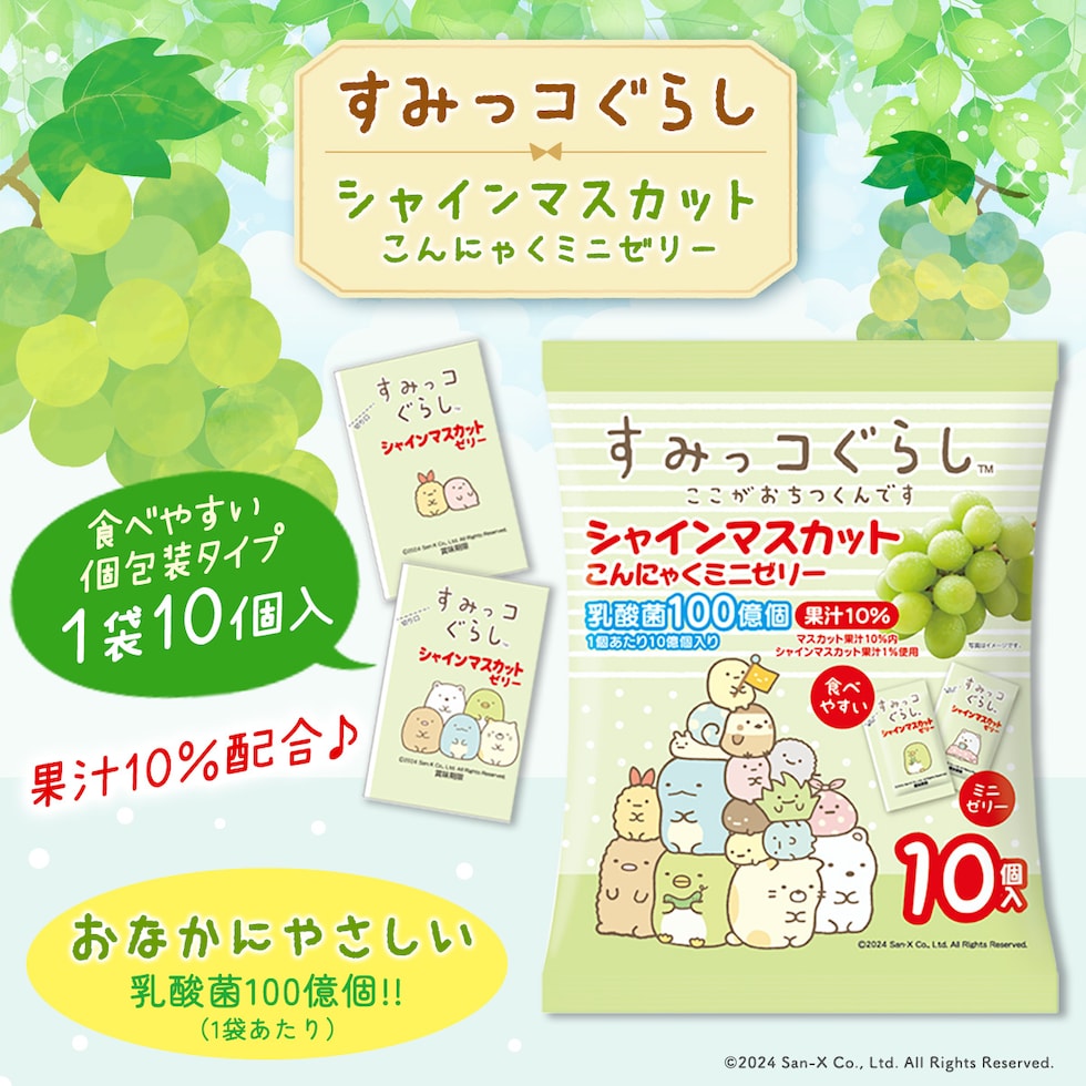 | 「すみっコぐらし」「ちいかわ」「Hello Kitty」「KUROMI」の大人気キャラクターがデザインされた個包装タイプのこんにゃくゼリーの詰め合わせセットです。フルーツの美味しさをぎゅっと詰め込んだぷるぷる食感のこんにゃくゼリー。個包装だから持ち運びにも便利で、おやつやちょっとしたリフレッシュタイムにもぴったりです。 |