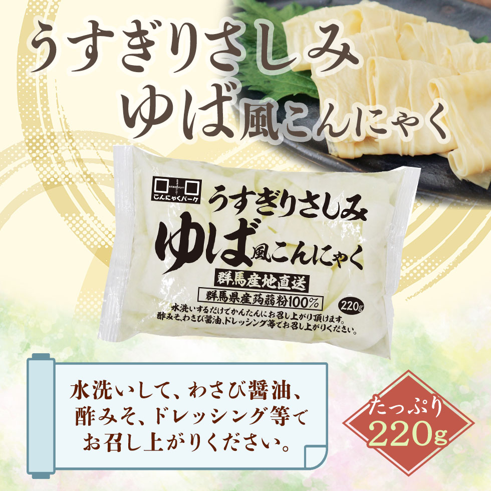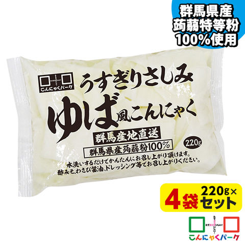 刺身こんにゃく うすぎりさしみゆば風こんにゃく こんにゃくパーク ゆばこんにゃく 湯葉こんにゃく ダイエット食品 置き換え 低糖質 糖質オフ 蒟蒻 あく抜き済み 群馬県産 ヨコオデイリーフーズ (220g*4袋入)