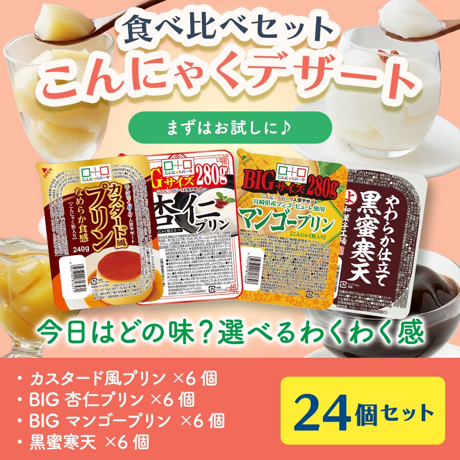 こんにゃくプリン 食べ比べセット カスタード風プリン 杏仁プリン マンゴープリン 黒蜜寒天 まとめ買い こんにゃくパーク プリン ダイエット カロリーオフ 低カロリー 満腹感 蒟蒻 こんにゃく デザート スイーツ ダイエット食品 置き換え 群馬県産 4種類 1個240~280g 24個入