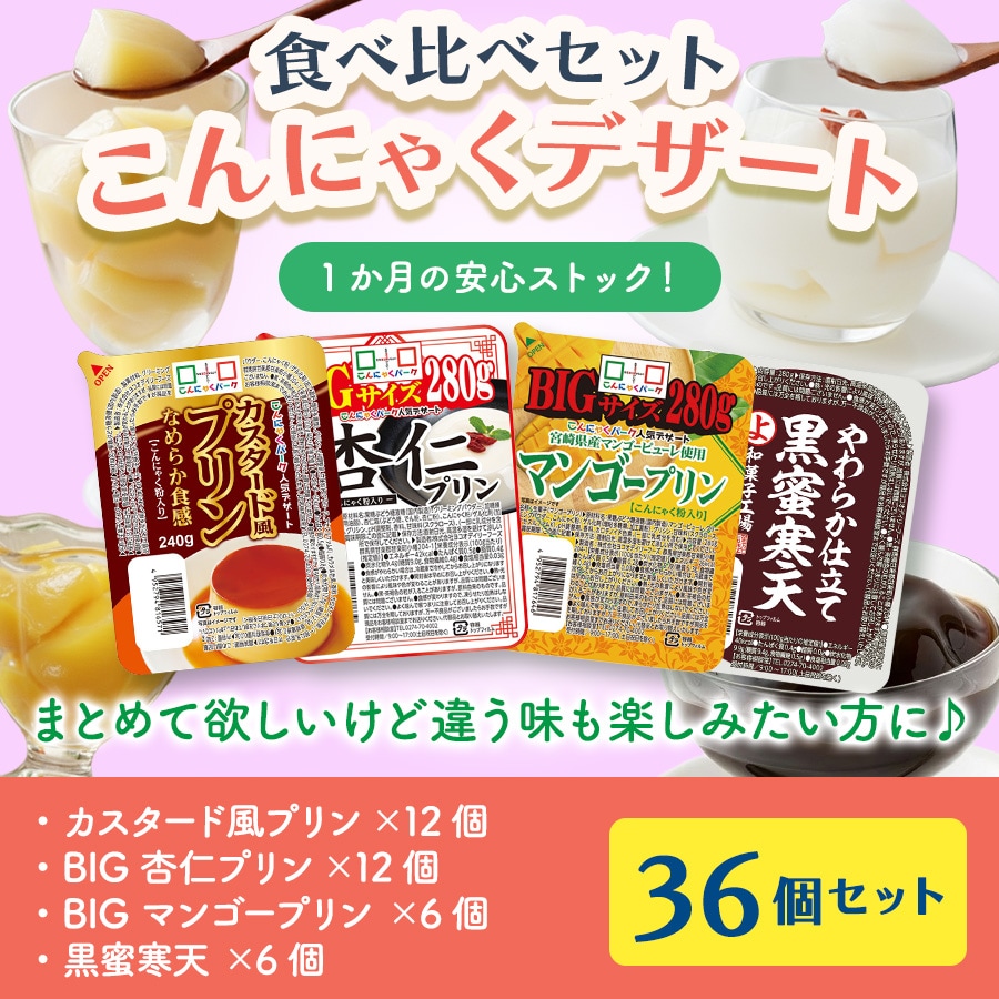 こんにゃくプリン 食べ比べセット カスタード風プリン 杏仁プリン マンゴープリン 黒蜜寒天 まとめ買い こんにゃくパーク プリン ダイエット カロリーオフ 低カロリー 満腹感 蒟蒻 こんにゃく デザート スイーツ ダイエット食品 置き換え 群馬県産 4種類 1個240~280g 36個入