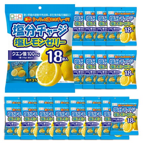 | 暑い季節の運動や外出時、屋外の現場作業や農作業時などで塩分補給に便利な個包装タイプの塩分チャージ塩レモンゼリー。こちらは1袋18個入り。塩分補給にぴったりなクエン酸、カリウム入り。常温保存ができるから、まとめ買いをしてもいつでも使用できるようにストックが可能です。凍らせれば、塩分と冷たさを同時にチャージができ、熱中症対策にぴったりです! |