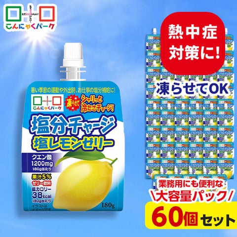 【30%OFF】熱中症対策 凍らせてもおいしい! 飲む塩分チャージ塩レモンゼリー 塩分補給 ゼリー飲料 飲むゼリー 夏限定 業務用 大容量パック こんにゃくパーク まとめ買い 業務用 パウチ ダイエット ゼリー ヨコオデイリーフーズ (180g ×60個)