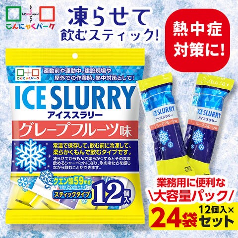 熱中症対策 凍らせて体の内側から冷やす! アイススラリー グレープフルーツ味 暑さ対策 屋外作業 クールダウン 業務用 大容量パック こんにゃくパーク まとめ買い 個包装 パウチ スティック 常温保存 ヨコオデイリーフーズ (12個入 ×24袋)