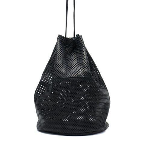 日本古来の小物や手回り品を収納して持ち歩くための紐で縛って携帯する巾着袋をヒントに、今の装いに合うようにシンプルにデザインした『HORSE LEATHER/ホースレザー』シリーズから、透け感が魅力の巾着バッグが登場です。こちらは巾着シリーズの中で一番容量が入るXLサイズとなっています。