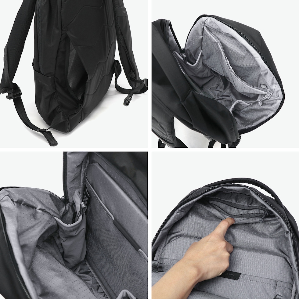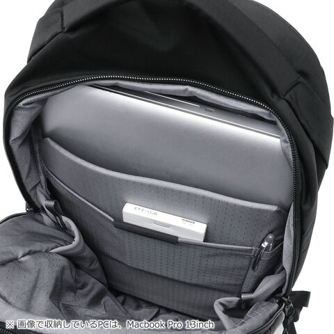 | 仕様 | <外側> ポケット×5 <内側> ポケット×3 PC収納×1 ボトルホルダー×2 ペンホルダー×1 キーフック×1 <付属品> チェストストラップ×1 収納袋×1 |