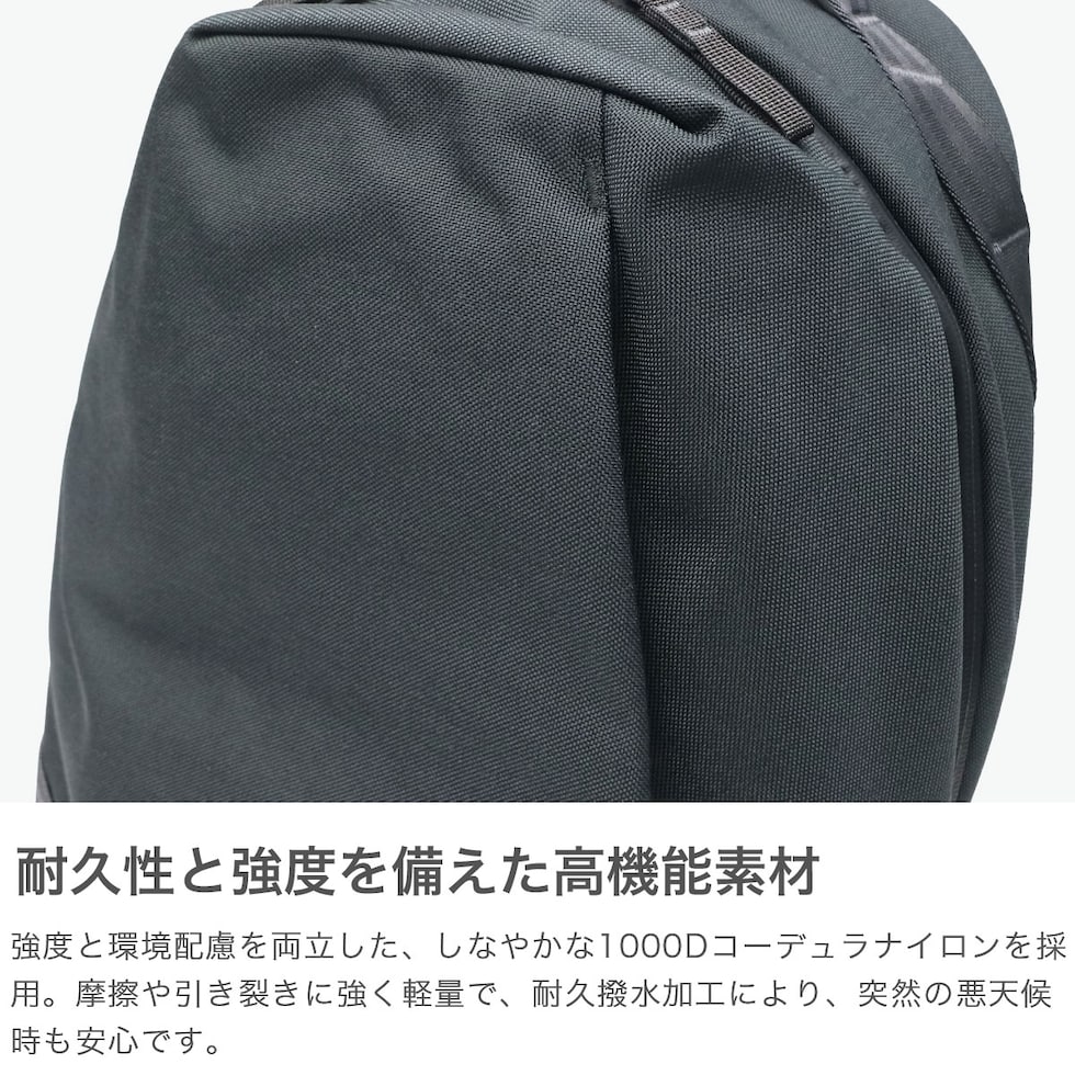 高機能バックパック 大都市と自然が融合する香港で誕生した新進気鋭のブランド『ABLE CARRY/エイブルキャリー』。こちらはブランドの顔とも言えるフラッグシップモデル「DAILY PLUS」。"無重力バックパック"と称された抜群のフィット感と快適な背負い心地は独自構造「Aフレーム」によるもの。洗練されたミニマルなデザインでありながら、荷物を取り出しやすく使いやすい機能満載の都市型バックパックです。 |