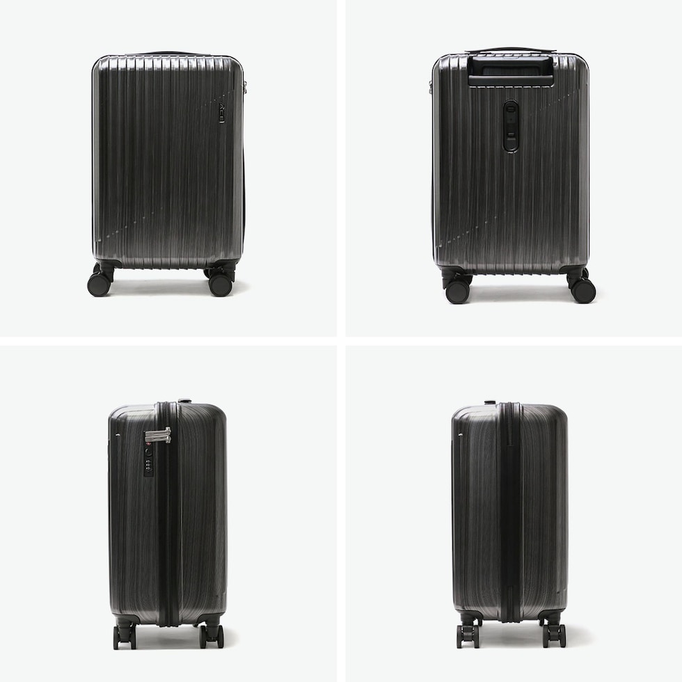 高級感のある上質な印象 シンプルでスタイリッシュなデザインで、旅行はもちろん出張にもぴったりのスーツケース。機内持ち込みに対応したサイズ感で、扱いやすいコンパクトさが魅力です。旋回性に優れた双輪仕様やストッパー機能などの充実した装備で、使い勝手も抜群。電車や坂道での不意な走行を防ぐストッパー機能を搭載し、移動中も安心です。 |